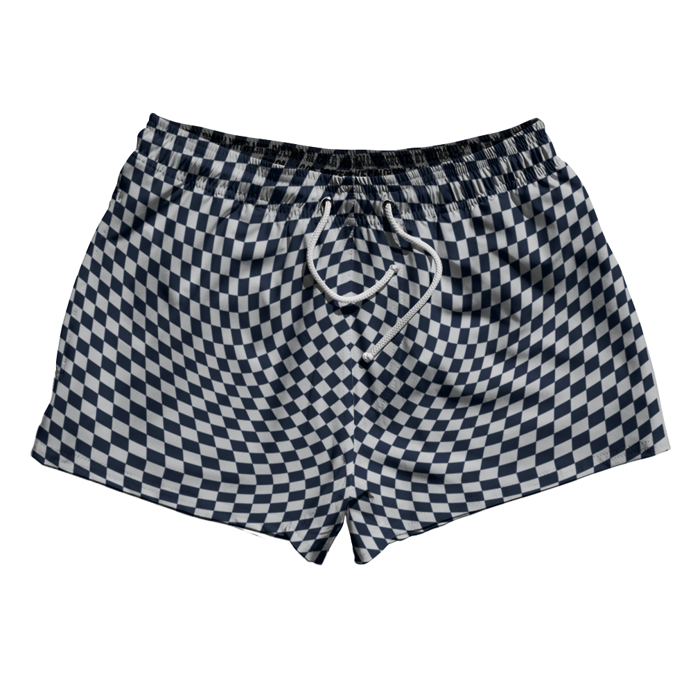 • Warped Checkerboard 2.5" Swim Shorts Made in USA