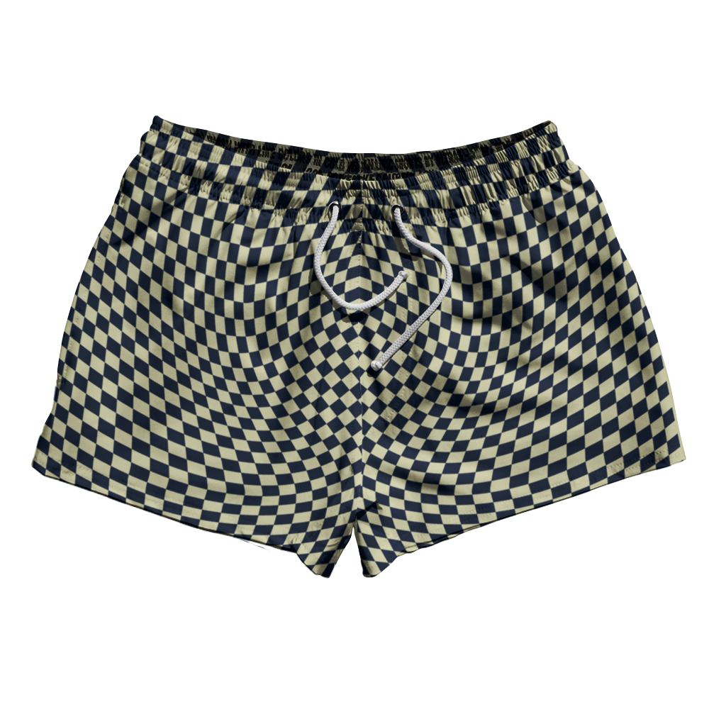 • Warped Checkerboard 2.5" Swim Shorts Made in USA