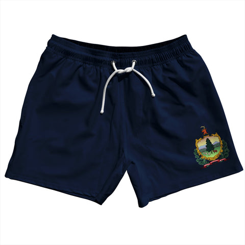 Product Story: Vermont US State Flag 2.5" Swim Shorts Made in USAProduct Description: Vermont US State Flag 2.5" Swim Shorts Made in USA 5" Inseam & 17.5" Tall Swim Trunks Board Shorts Bathing Suits Swim Suits Quick Drying Material Stretch Polyester Elastic Waistband Drawstring Side Pockets Made In USA