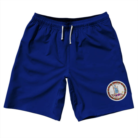 Product Story: Virginia US State Flag 10" Swim Shorts Made in USAProduct Description: Virginia US State Flag 10" Swim Shorts Made in USA 5" Inseam & 17.5" Tall Swim Trunks Board Shorts Bathing Suits Swim Suits Quick Drying Material Stretch Polyester Elastic Waistband Drawstring Side Pockets Made In USA