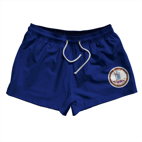 Product Story: Virginia US State Flag 2.5" Swim Shorts Made in USAProduct Description: Virginia US State Flag 2.5" Swim Shorts Made in USA 7'' Inseam & 20" Tall Swim Trunks Board Shorts Bathing Suits Swim Suits Quick Drying Material Stretch Polyester Elastic Waistband Drawstring Side Pockets Made In USA