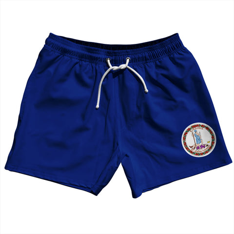 Product Story: Virginia US State Flag 5" Swim Shorts Made in USAProduct Description: Virginia US State Flag 5" Swim Shorts Made in USA Stripe 2.50" Inseam Swim Shorts Swim Trunks Board Shorts Bathing Suits Swim Suits Quick Drying Material Stretch Polyester Elastic Waistband Drawstring Side Pockets Made In USA