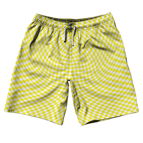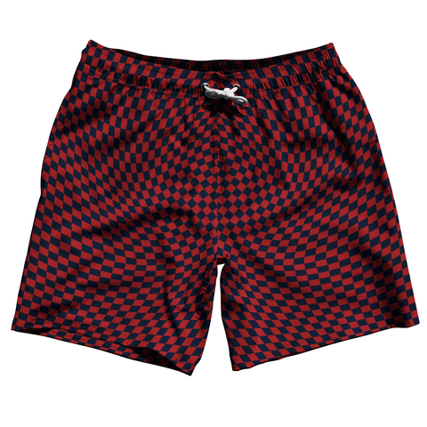 Product Story: Warped Checkerboard Swim Shorts 7" Made in USAProduct Description: Warped Checkerboard Swim Shorts 7" Made in USA 7'' Inseam & 20" Tall Swim Trunks Board Shorts Bathing Suits Swim Suits Quick Drying Material Stretch Polyester Elastic Waistband Drawstring Side Pockets Made In USA