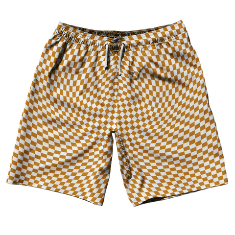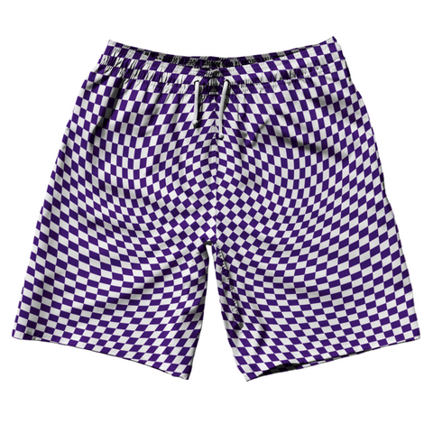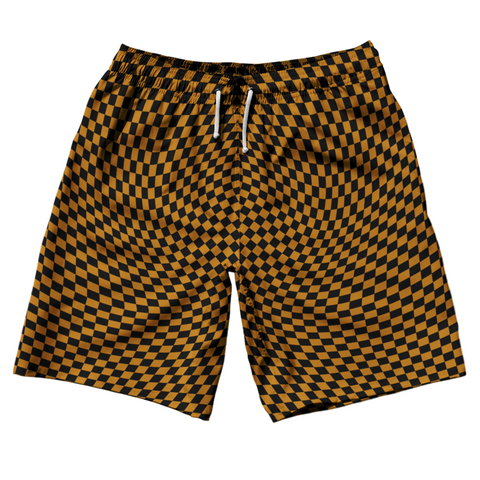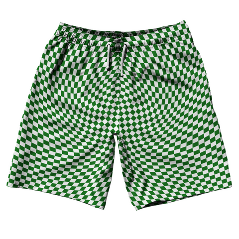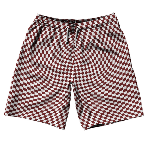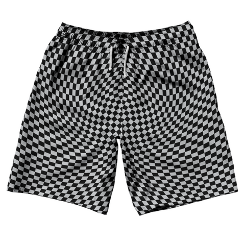 Product Story: Warped Checkerboard 10" Swim Shorts Made in USAProduct Description: Warped Checkerboard 10" Swim Shorts Made in USA Stripe 10" Inseam Swim Shorts Swim Trunks Board Shorts Bathing Suits Swim Suits Quick Drying Material Stretch Polyester Elastic Waistband Drawstring Side Pockets Made In USA