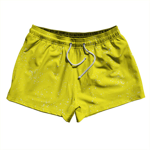 Product Story: Super Fly Pattern Yellow Bright and White 2.5" Swim Shorts Made in USAProduct Description: Super Fly Pattern Yellow Bright and White 2.5" Swim Shorts Made in USA Stripe 2.50" Inseam Swim Shorts Swim Trunks Board Shorts Bathing Suits Swim Suits Quick Drying Material Stretch Polyester Elastic Waistband Drawstring Side Pockets Made In USA