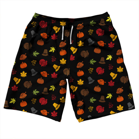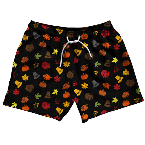 Product Story: Thanksgiving All Over Pattern 5" Swim Shorts Made in USAProduct Description: Thanksgiving All Over Pattern 5" Swim Shorts Made in USA 5" Inseam & 17.5" Tall Swim Trunks Board Shorts Bathing Suits Swim Suits Quick Drying Material Stretch Polyester Elastic Waistband Drawstring Side Pockets Made In USA