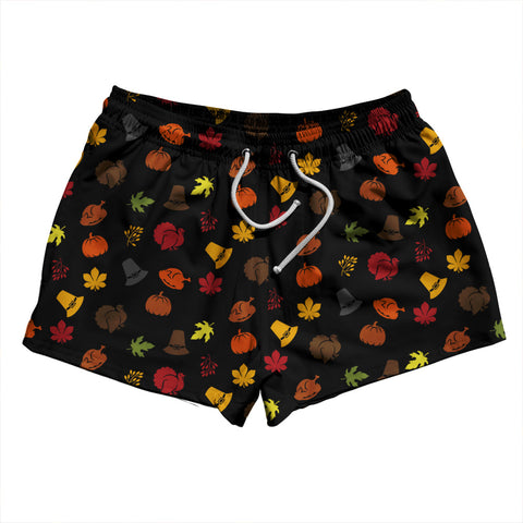 Product Story: Thanksgiving All Over Pattern 2.5" Swim Shorts Made in USAProduct Description: Thanksgiving All Over Pattern 2.5" Swim Shorts Made in USA Stripe 2.50" Inseam Swim Shorts Swim Trunks Board Shorts Bathing Suits Swim Suits Quick Drying Material Stretch Polyester Elastic Waistband Drawstring Side Pockets Made In USA