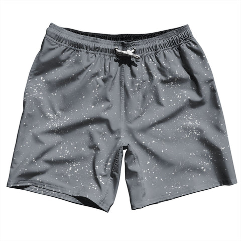 Product Story: Super Fly Pattern Grey Dark and White Swim Shorts 7" Made in USAProduct Description: Super Fly Pattern Grey Dark and White Swim Shorts 7" Made in USA 7'' Inseam & 20" Tall Swim Trunks Board Shorts Bathing Suits Swim Suits Quick Drying Material Stretch Polyester Elastic Waistband Drawstring Side Pockets Made In USA