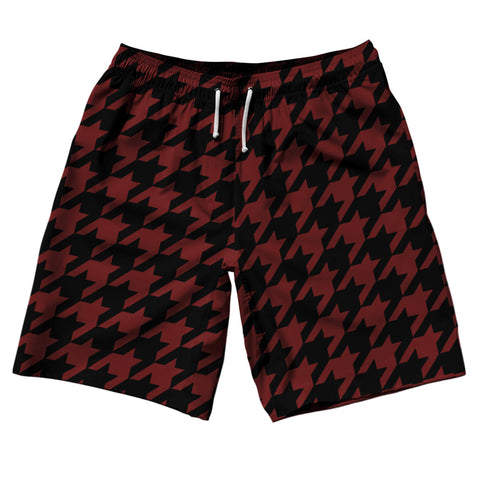 Product Story: Red Maroon And Black Houndstooth 10" Swim Shorts Made In USAProduct Description: Red Maroon And Black Houndstooth 10" Swim Shorts Made In USA Stripe 10" Inseam Swim Shorts Swim Trunks Board Shorts Bathing Suits Swim Suits Quick Drying Material Stretch Polyester Elastic Waistband Drawstring Side Pockets Made In USA