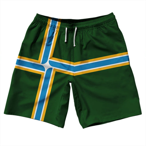 Product Story: Oregon US State Flag 5" Swim Shorts Made in USAProduct Description: Oregon US State Flag 5" Swim Shorts Made in USA Stripe 2.50" Inseam Swim Shorts Swim Trunks Board Shorts Bathing Suits Swim Suits Quick Drying Material Stretch Polyester Elastic Waistband Drawstring Side Pockets Made In USA
