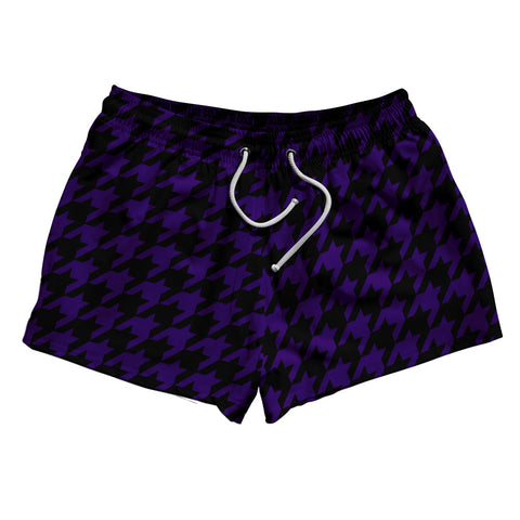 Product Story: Purple Lakers And Black Houndstooth 2.5" Swim Shorts Made In USAProduct Description: Purple Lakers And Black Houndstooth 2.5" Swim Shorts Made In USA Stripe 2.50" Inseam Swim Shorts Swim Trunks Board Shorts Bathing Suits Swim Suits Quick Drying Material Stretch Polyester Elastic Waistband Drawstring Side Pockets Made In USA