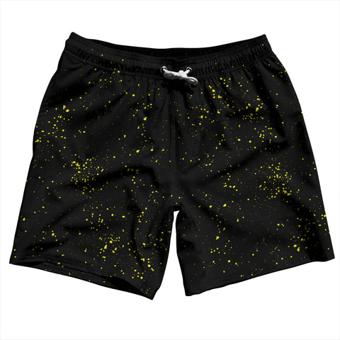 Product Story: Splatter Swim Shorts 7" Made in USAProduct Description: Splatter Swim Shorts 7" Made in USA 7'' Inseam & 20" Tall Swim Trunks Board Shorts Bathing Suits Swim Suits Quick Drying Material Stretch Polyester Elastic Waistband Drawstring Side Pockets Made In USA