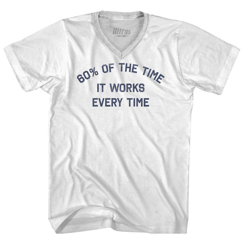 Product Story: 60% Of The Time It Works Every Time Adult Tri-Blend V-neck T-shirtProduct Description: 60% Of The Time It Works Every Time Adult Tri-Blend V-neck T-shirt Tri-Blend (Polyester, Rayon, Cotton) Buttery Smooth Soft Material Medium Weight Tee Soft Hand Print