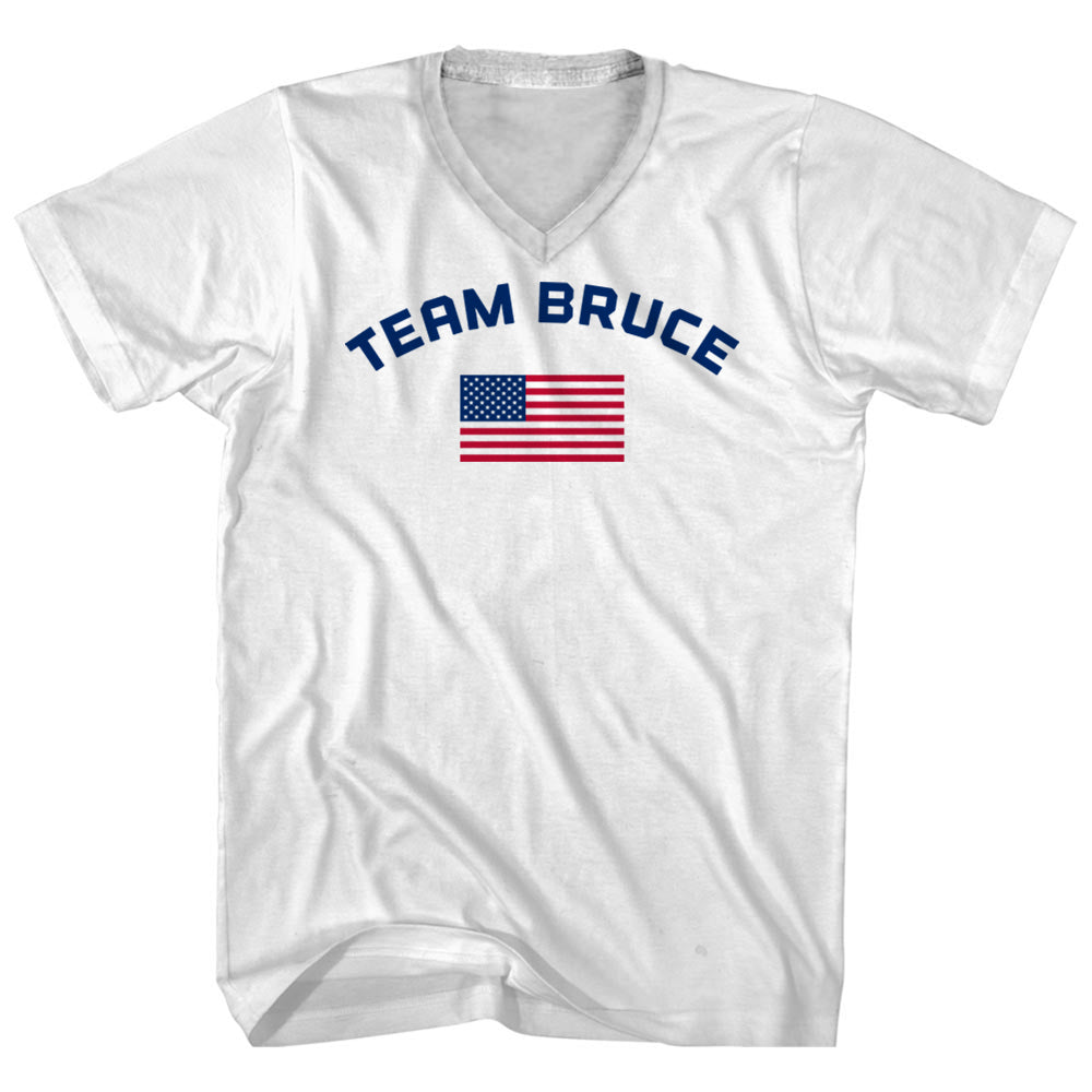 - Team Bruce Over An American Flag Adult Cotton V-Neck T-Shirt