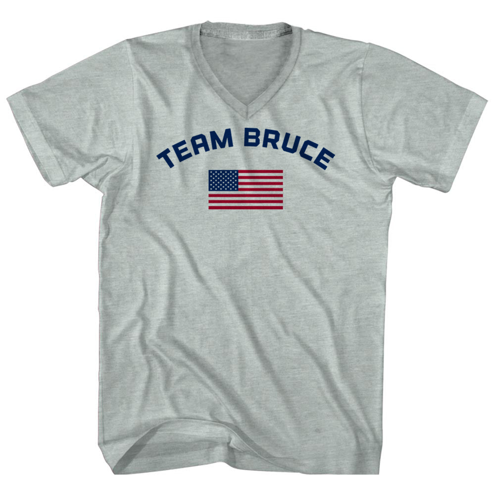 - Team Bruce Over An American Flag Adult Tri-Blend V-Neck T-Shirt