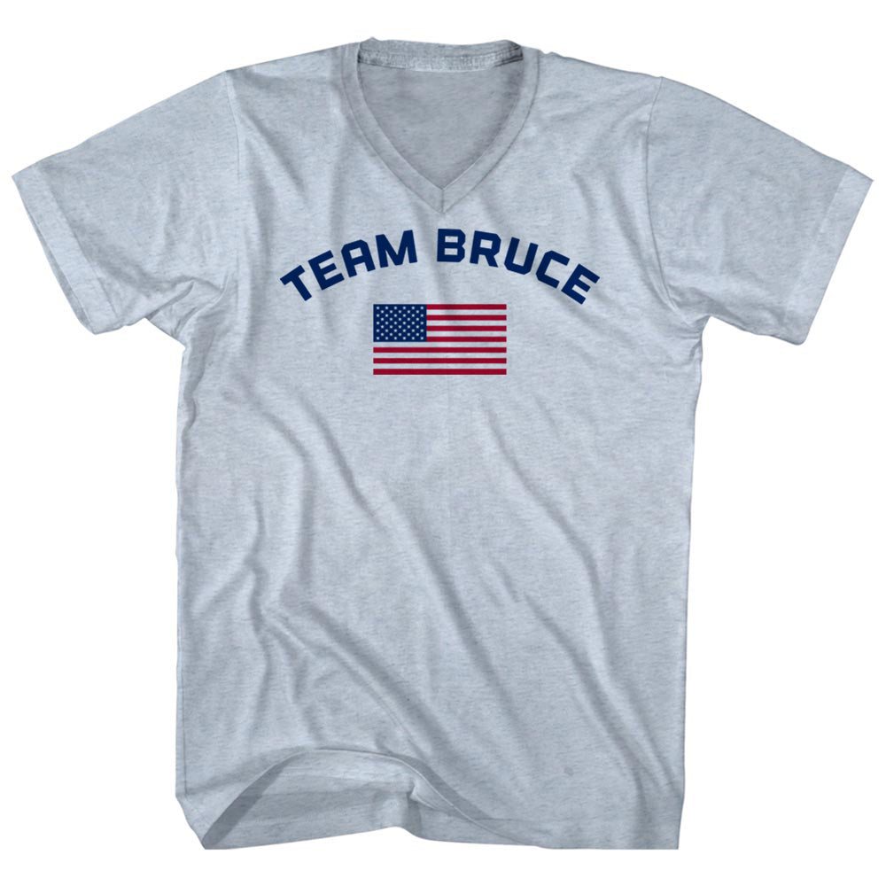 - Team Bruce Over An American Flag Adult Tri-Blend V-Neck T-Shirt