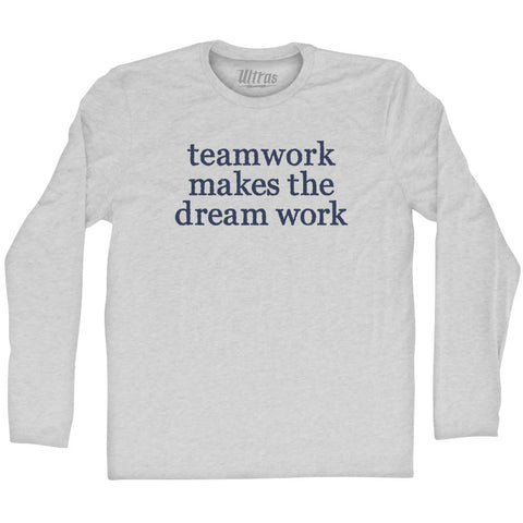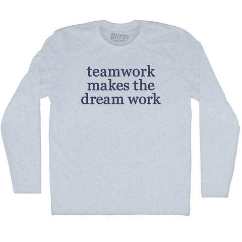 Product Story: Teamwork Makes The Dream Work Rage Font Adult Cotton Long Sleeve T-shirtProduct Description: Teamwork Makes The Dream Work Rage Font Adult Cotton Long Sleeve T-shirt Cotton (90% Cotton &10% Polyester) Buttery Smooth Soft Material Medium Weight Tee Soft Hand Print