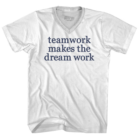 Product Story: Teamwork Makes The Dream Work Rage Font Adult Cotton V-neck T-shirtProduct Description: Teamwork Makes The Dream Work Rage Font Adult Cotton V-neck T-shirt Cotton Buttery Smooth Soft Material Medium Weight Tee Soft Hand Print