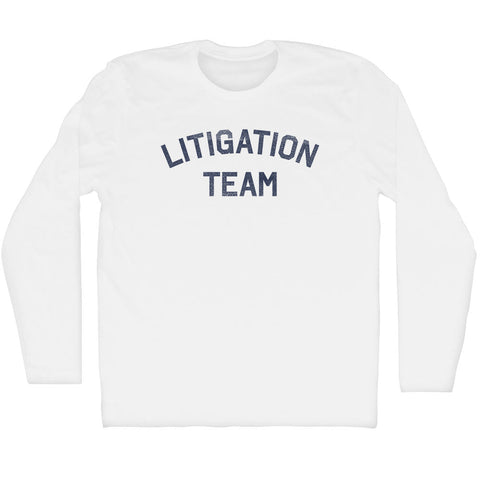 Product Story: Litigation Team Adult Cotton Long Sleeve T-shirtProduct Description: Litigation Team Adult Cotton Long Sleeve T-shirt Cotton Buttery Smooth Soft Material Medium Weight Tee Soft Hand Print