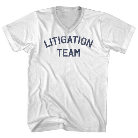 Product Story: Litigation Team Adult Cotton V-neck T-shirtProduct Description: Litigation Team Adult Cotton V-neck T-shirt Cotton Buttery Smooth Soft Material Medium Weight Tee Soft Hand Print