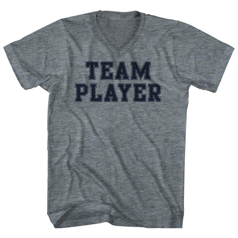 Product Story: Team Player Adult Cotton V-neck T-shirtProduct Description: Team Player Adult Cotton V-neck T-shirt Tri-Blend (Polyester, Rayon, Cotton) Buttery Smooth Soft Material Medium Weight Tee Soft Hand Print