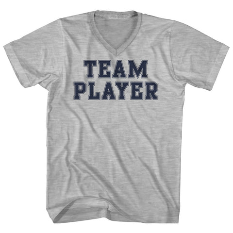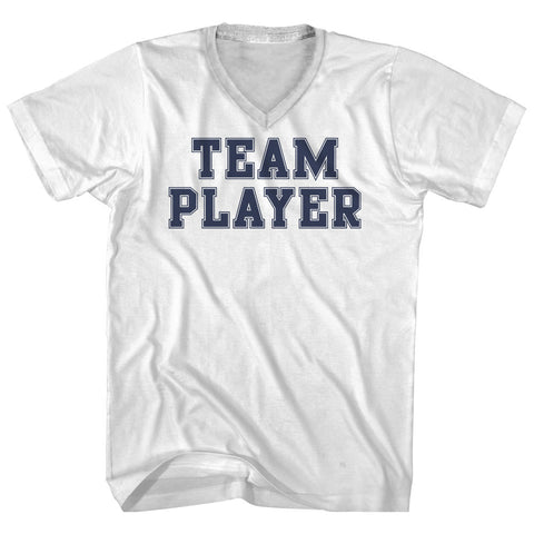 Product Story: Team Player Adult Cotton V-neck T-shirtProduct Description: Team Player Adult Cotton V-neck T-shirt Cotton Buttery Smooth Soft Material Medium Weight Tee Soft Hand Print