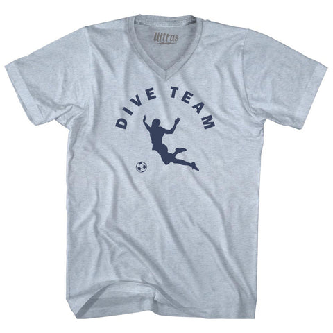 Product Story: Dive Team Soccer Adult Tri-Blend V-Neck T-ShirtProduct Description: Dive Team Soccer Adult Tri-Blend V-Neck T-Shirt Tri-Blend (Polyester, Rayon, Cotton) Buttery Smooth Soft Material Medium Weight Tee Soft Hand Print