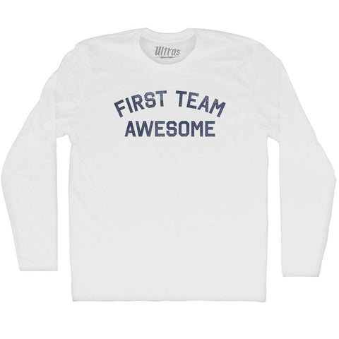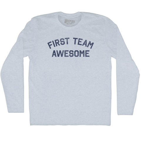 Product Story: First Team Awesome Adult Cotton Long Sleeve T-shirtProduct Description: First Team Awesome Adult Cotton Long Sleeve T-shirt Cotton Buttery Smooth Soft Material Medium Weight Tee Soft Hand Print