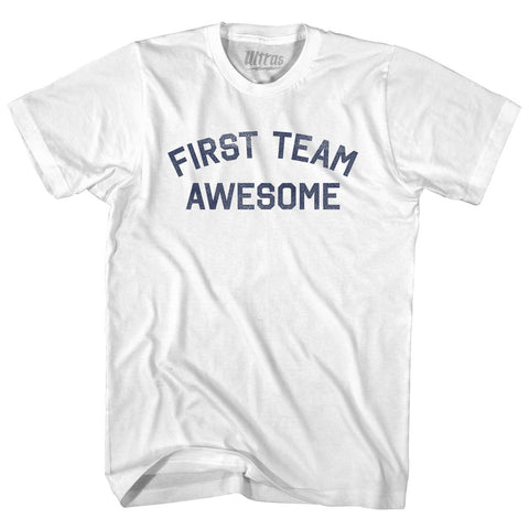 Product Story: First Team Awesome Adult Cotton T-shirtProduct Description: First Team Awesome Adult Cotton T-shirt Cotton Buttery Smooth Soft Material Medium Weight Tee Soft Hand Print