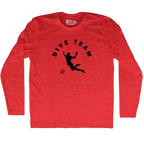 Product Story: Dive Team Soccer Adult Tri-Blend Long Sleeve T-ShirtProduct Description: Dive Team Soccer Adult Tri-Blend Long Sleeve T-Shirt Tri-Blend (Polyester, Rayon, Cotton) Buttery Smooth Soft Material Medium Weight Tee Soft Hand Print