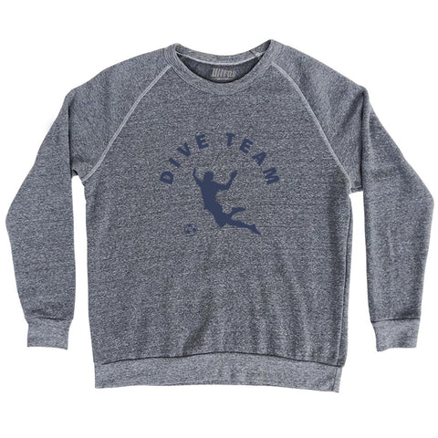 Product Story: Dive Team Soccer Adult Tri-Blend SweatshirtProduct Description: Dive Team Soccer Adult Tri-Blend Sweatshirt Tri-Blend (Polyester, Rayon, Cotton) Buttery Smooth Soft Material Medium Weight Tee Soft Hand Print