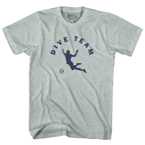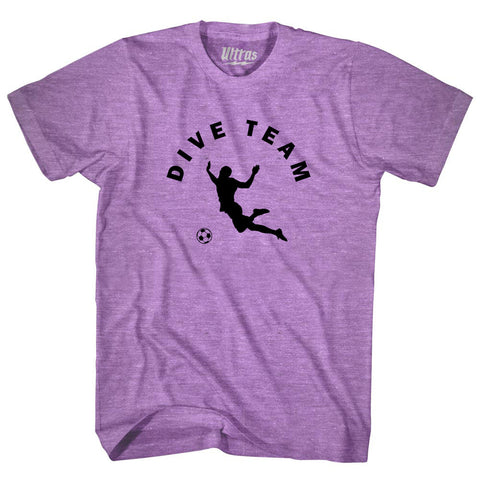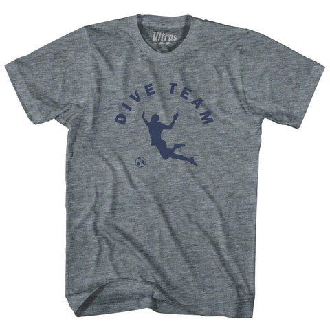 Product Story: Dive Team Soccer Adult Tri-Blend T-shirtProduct Description: Dive Team Soccer Adult Tri-Blend T-shirt Tri-Blend (Polyester, Rayon, Cotton) Buttery Smooth Soft Material Medium Weight Tee Soft Hand Print