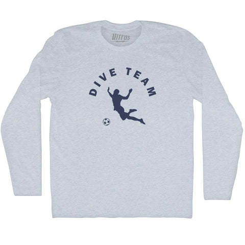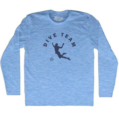 Product Story: Dive Team Soccer Adult Tri-Blend Long Sleeve T-shirtProduct Description: Dive Team Soccer Adult Tri-Blend Long Sleeve T-shirt Tri-Blend (Polyester, Rayon, Cotton) Buttery Smooth Soft Material Medium Weight Tee Soft Hand Print