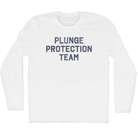 Product Story: Plunge Protection Team Adult Cotton Long Sleeve T-shirtProduct Description: Plunge Protection Team Adult Cotton Long Sleeve T-shirt Cotton Buttery Smooth Soft Material Medium Weight Tee Soft Hand Print plunge-protection-team-long-sleeve-white.jpg