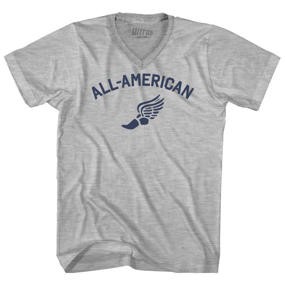 - All-American Running Track Winged Foot Adult Cotton V-neck T-shirt