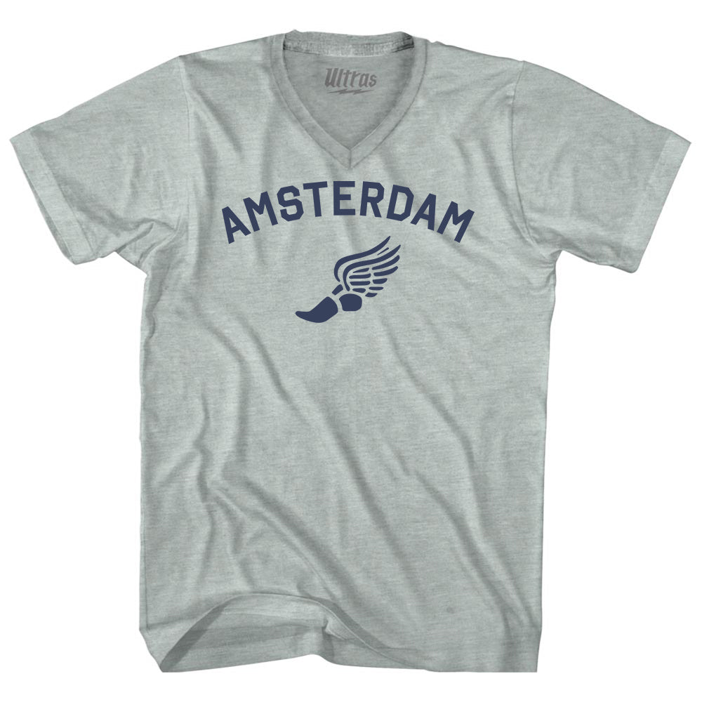 - Amsterdam Running Track Winged Foot Adult Tri-Blend V-neck T-shirt