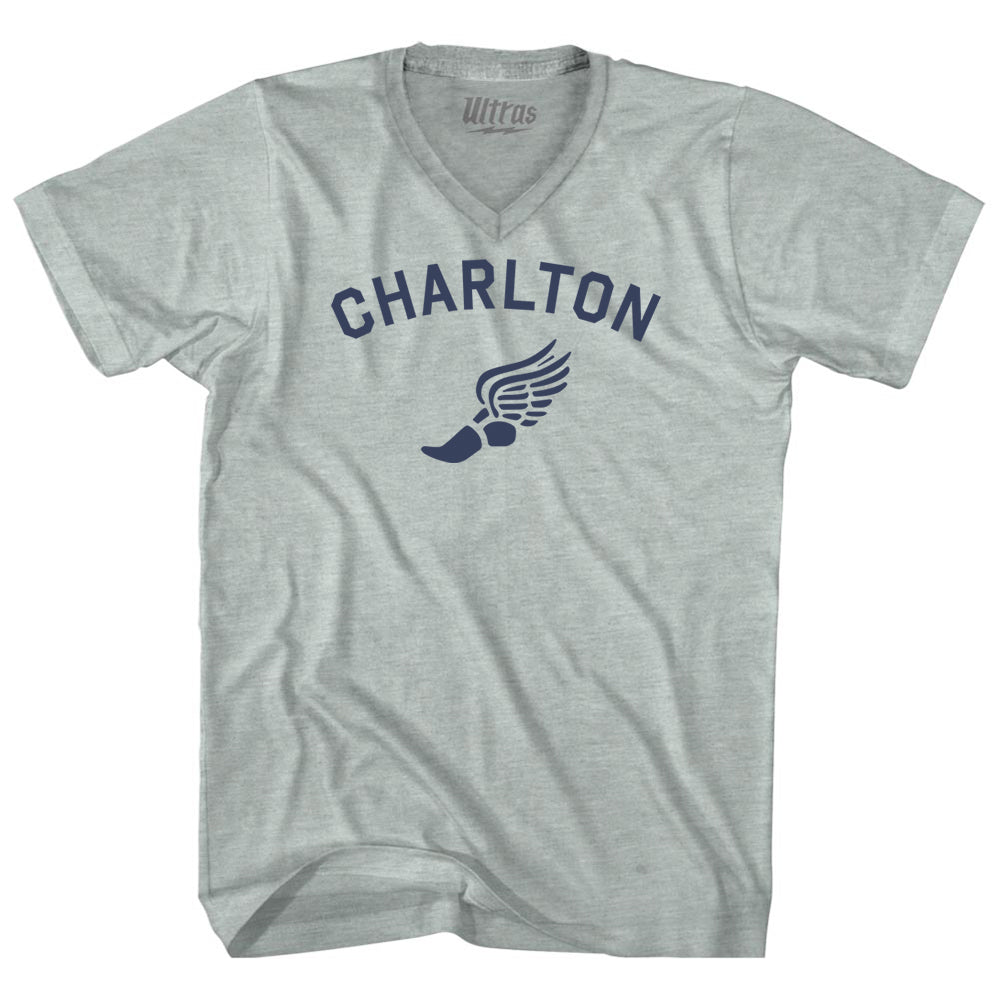 - Charlton Running Track Winged Foot-Adult Tri-Blend V-neck T-shirt