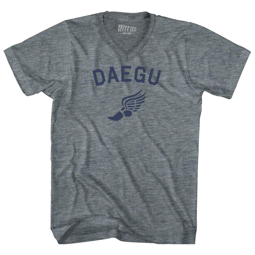 - Daegu Running Track Winged Foot Adult Tri-Blend V-neck T-shirt
