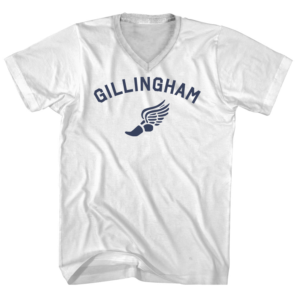 - Gillingham Running Track Winged Foot Adult Cotton V-neck T-shirt