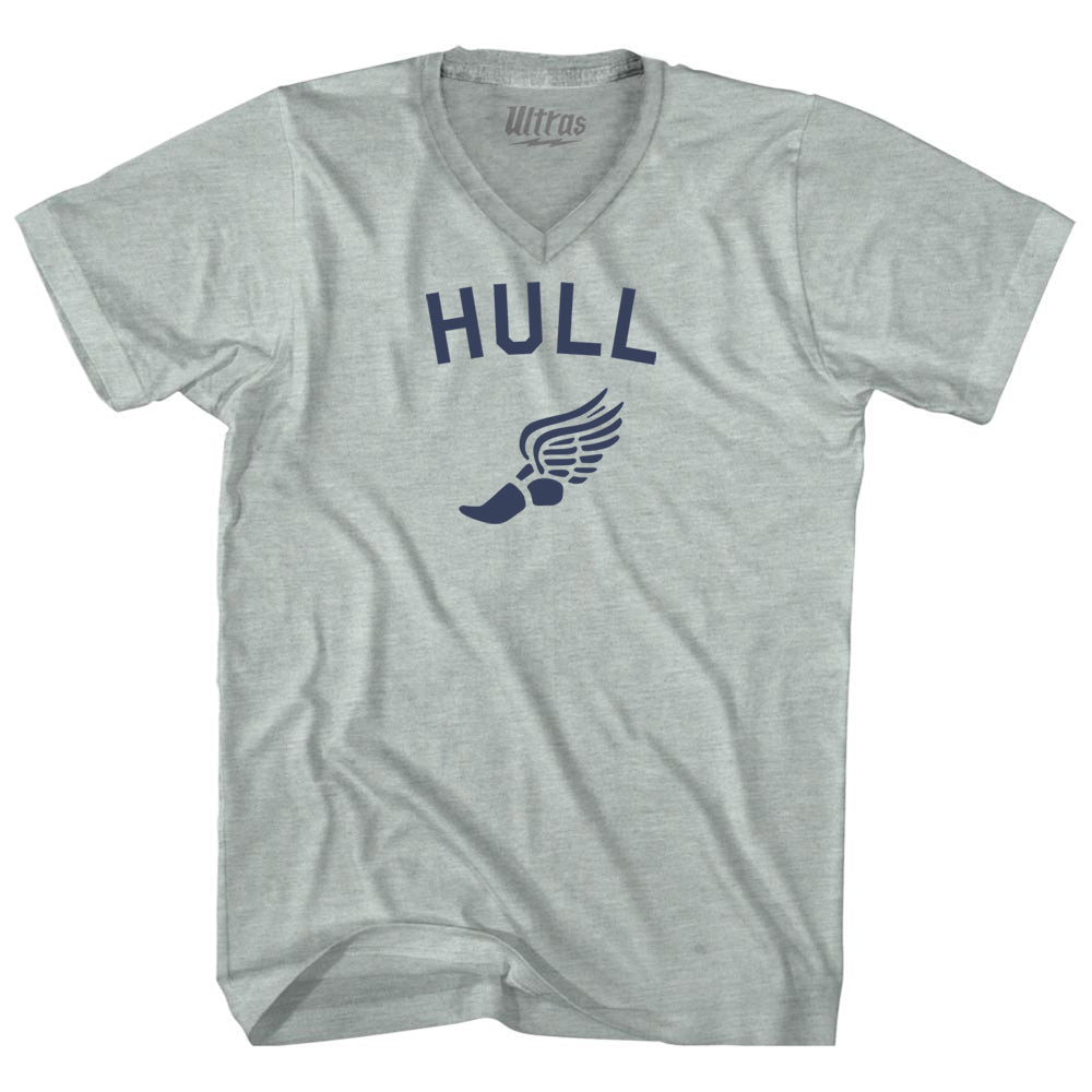 - Hull Running Track Winged Foot-Adult Tri-Blend V-neck T-shirt