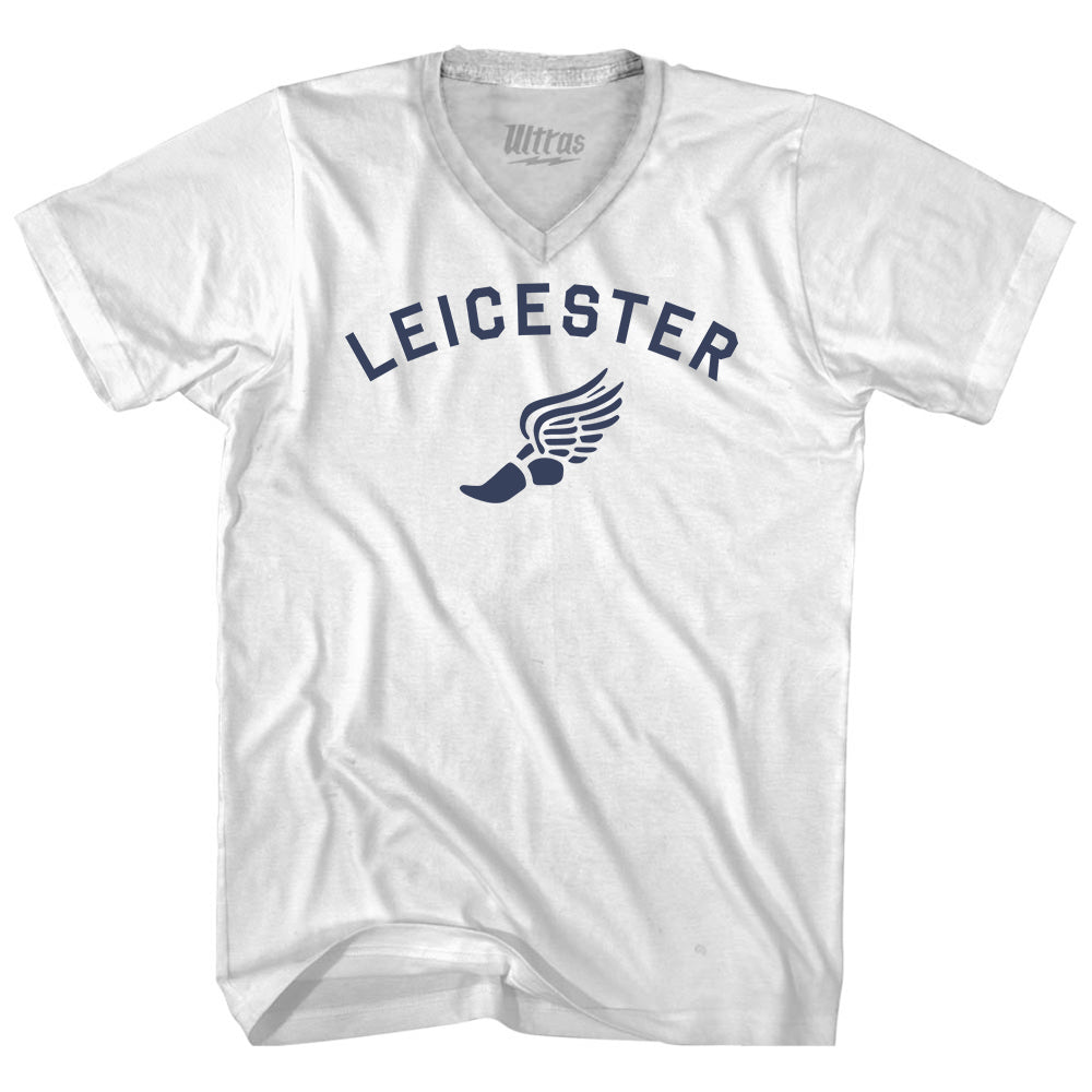 - Leicester Running Track Winged Foot-Adult Cotton V-neck T-shirt