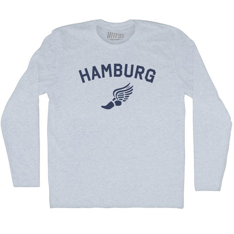 Product Story: Hamburg Running Track Winged Foot Adult Cotton Long Sleeve T-shirtProduct Description: Hamburg Running Track Winged Foot Adult Cotton Long Sleeve T-shirt Cotton (90% Cotton &10% Polyester) Buttery Smooth Soft Material Medium Weight Tee Soft Hand Print