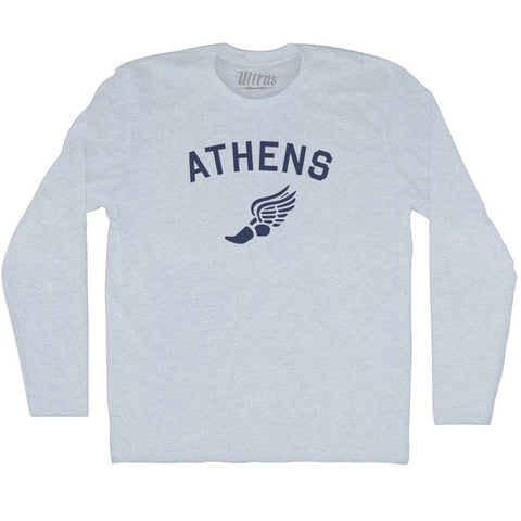 Product Story: Athens Running Track Winged Foot Adult Cotton Long Sleeve T-shirtProduct Description: Athens Running Track Winged Foot Adult Cotton Long Sleeve T-shirt Cotton (90% Cotton &10% Polyester) Buttery Smooth Soft Material Medium Weight Tee Soft Hand Print