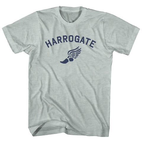 Product Story: Harrogate Running Track Winged Foot Adult Tri-Blend T-shirtProduct Description: Harrogate Running Track Winged Foot Adult Tri-Blend T-shirt Tri-Blend (Polyester, Rayon, Cotton) Buttery Smooth Soft Material Medium Weight Tee Soft Hand Print