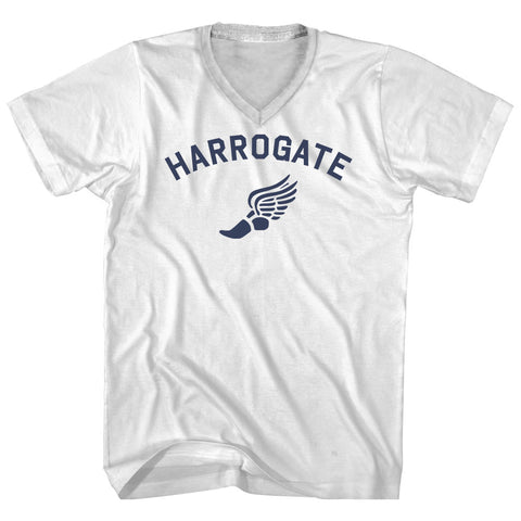 Product Story: Harrogate Running Track Winged Foot Adult Cotton V-neck T-shirtProduct Description: Harrogate Running Track Winged Foot Adult Cotton V-neck T-shirt Cotton Buttery Smooth Soft Material Medium Weight Tee Soft Hand Print