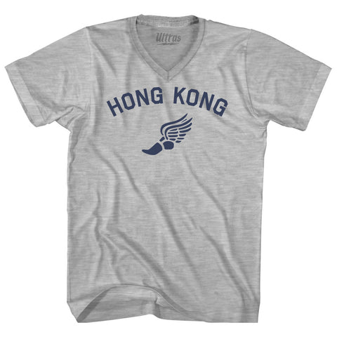 Product Story: Hong Kong Running Track Winged Foot Adult Cotton V-neck T-shirtProduct Description: Hong Kong Running Track Winged Foot Adult Cotton V-neck T-shirt Cotton Buttery Smooth Soft Material Medium Weight Tee Soft Hand Print