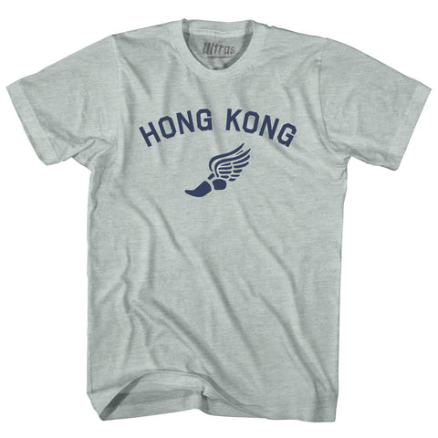 Product Story: Hong Kong Running Track Winged Foot Adult Tri-Blend T-shirtProduct Description: Hong Kong Running Track Winged Foot Adult Tri-Blend T-shirt Tri-Blend (Polyester, Rayon, Cotton) Buttery Smooth Soft Material Medium Weight Tee Soft Hand Print