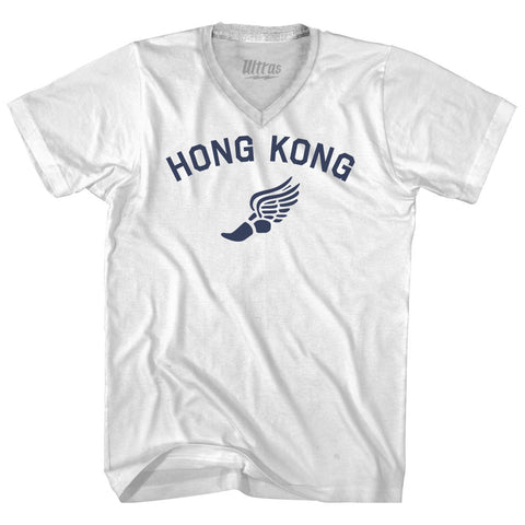 Product Story: Hong Kong Running Track Winged Foot Adult Tri-Blend V-neck T-shirtProduct Description: Hong Kong Running Track Winged Foot Adult Tri-Blend V-neck T-shirt Tri-Blend (Polyester, Rayon, Cotton) Buttery Smooth Soft Material Medium Weight Tee Soft Hand Print