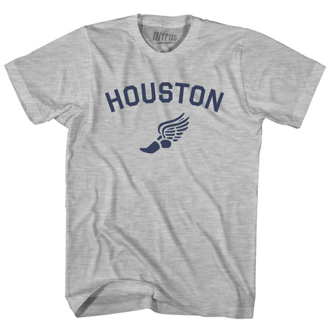 Product Story: Houston Running Track Winged Foot Adult Cotton T-shirtProduct Description: Houston Running Track Winged Foot Adult Cotton T-shirt Cotton Buttery Smooth Soft Material Medium Weight Tee Soft Hand Print