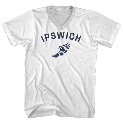 Product Story: Ipswich Running Track Winged Foot Adult Cotton V-neck T-shirtProduct Description: Ipswich Running Track Winged Foot Adult Cotton V-neck T-shirt Cotton Buttery Smooth Soft Material Medium Weight Tee Soft Hand Print